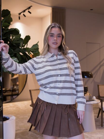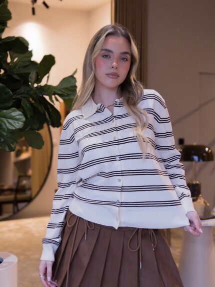 €17.90CASACO DE RISCA CREME E CASTANHA PONTO CHIC