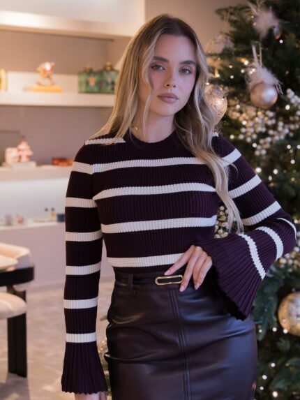 CAMISOLA CANELADA BORDO E CRU COM MANGA FLARE PONTO CHIC