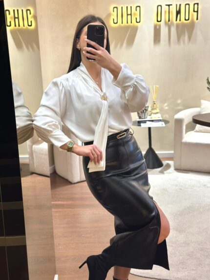 €44.90BLUSA BRANCA COM APLICAÇÃO DOURADA PONTO CHIC
