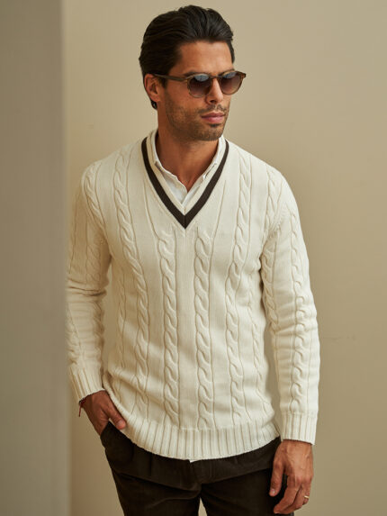 CAMISOLA TRICOT BICOLOR DECOTE EM V CRU ZOLF