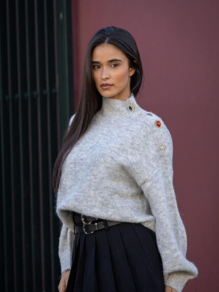 MALHA CINZA MEIA GOLA COM BOTÕES JOIA PONTO CHIC