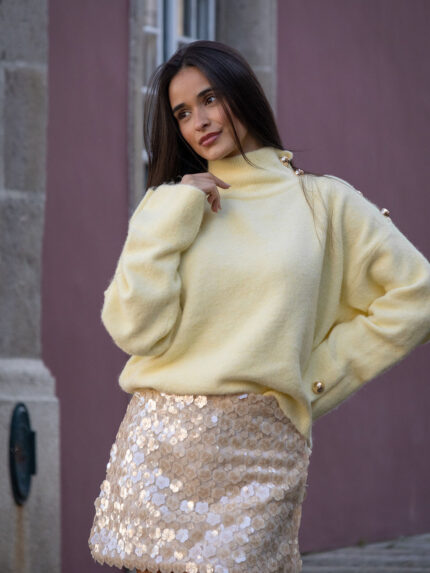 CAMISOLA DE MALHA AMARELA COM BOTÕES DOURADOS PONTO CHIC