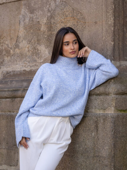 CAMISOLA DE MALHA AZUL COM BORDADOS DE LAÇOS PONTO CHIC