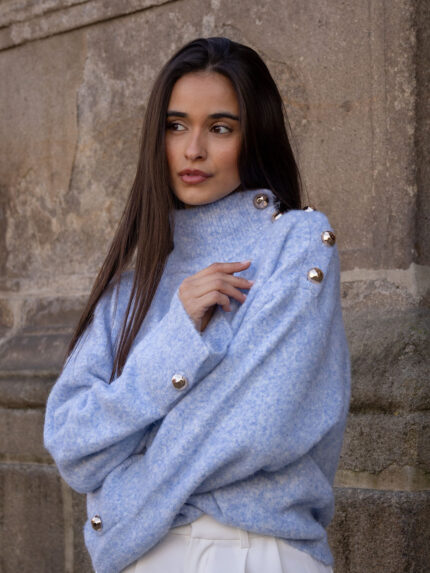 CAMISOLA DE MALHA AZUL COM BOTÕES DOURADOS PONTO CHIC
