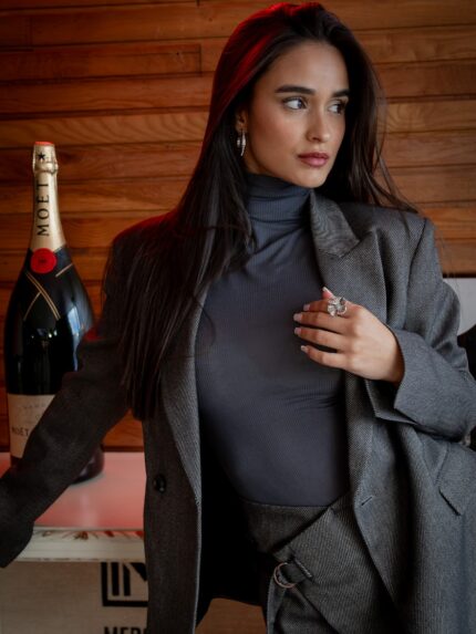 CAMISOLA CANELADA GOLA ALTA CINZA DIXIE
