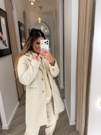 €19.90CASACO COM LAPELA CLÁSSICA E BOTÕES DOURADOS BEGE CLARO PONTO CHIC