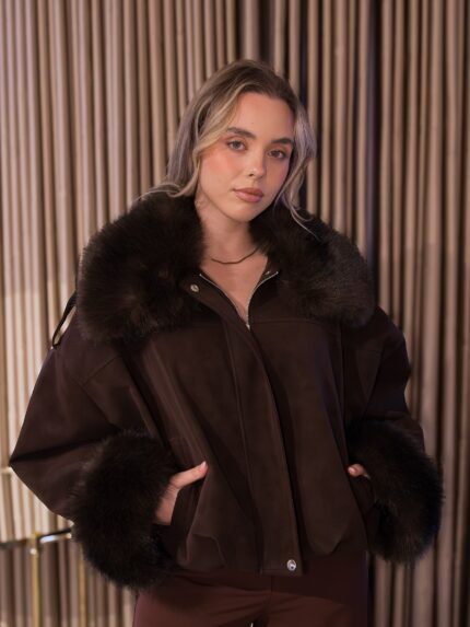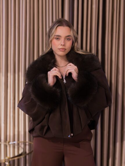 CASACO BOMBER CASTANHO PONTO CHIC