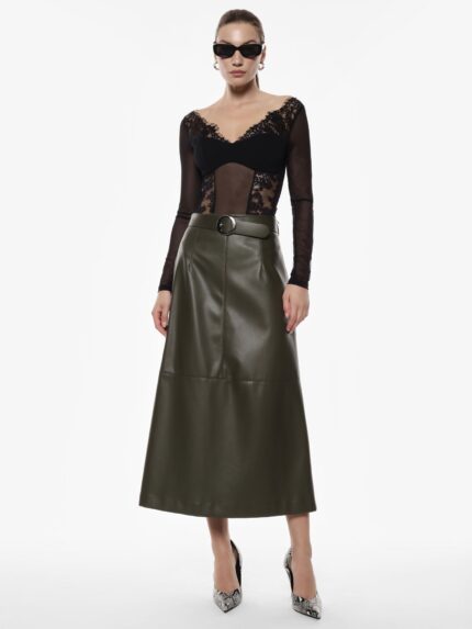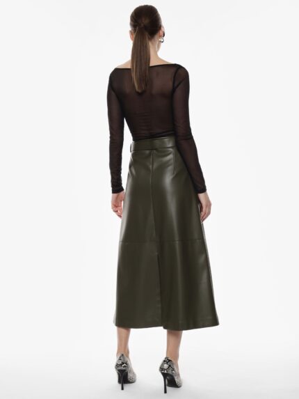 SAIA CASTANHA EM PELE SINTÉTICA COM CINTO IMPERIAL