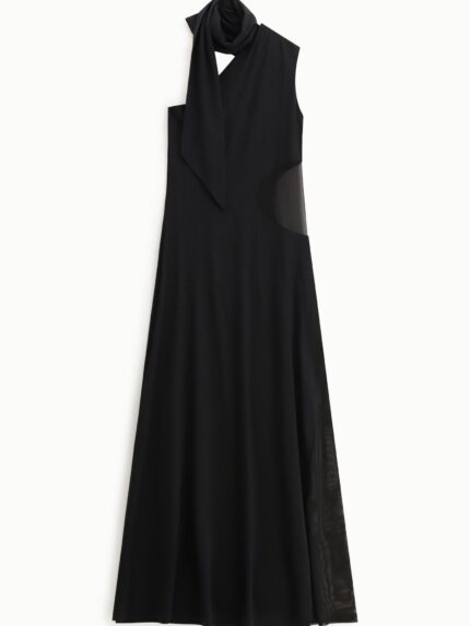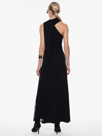 VESTIDO PRETO COM DECOTE DRAPEADO IMPERIAL