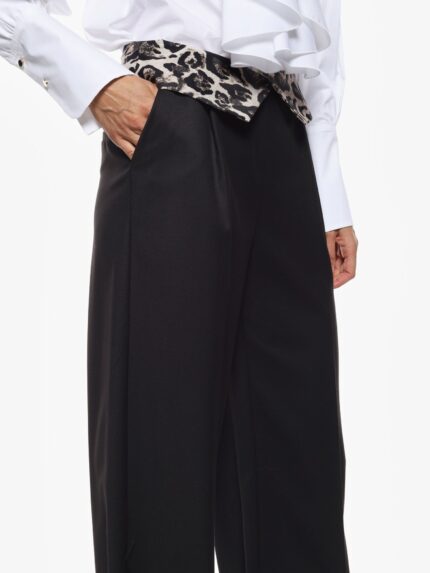CALÇAS PRETAS COM COLARINHO ANIMAL PRINT IMPERIAL