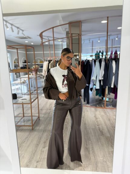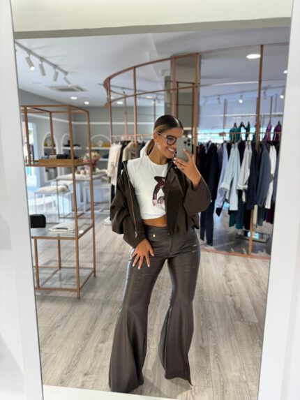 CALÇAS BOCA DE SINO CASTANHO EM POLIPELE MISS YOU
