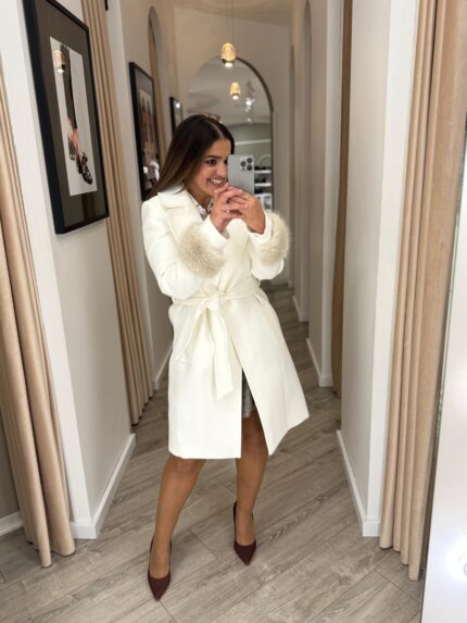 SOBRETUDO BRANCO COM PELO NOS PUNHOS RINASCIMENTO