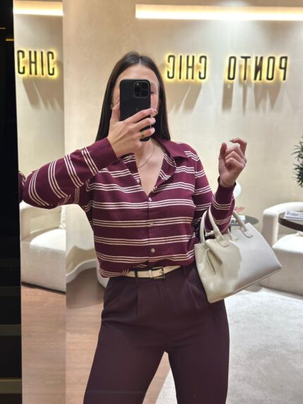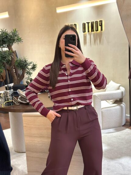 CAMISOLA ÀS RISCAS BORDÔ PONTO CHIC