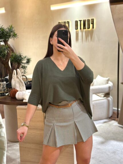 €140.00MALHA VERDE MILITAR DECOTE EM V IMPERIAL