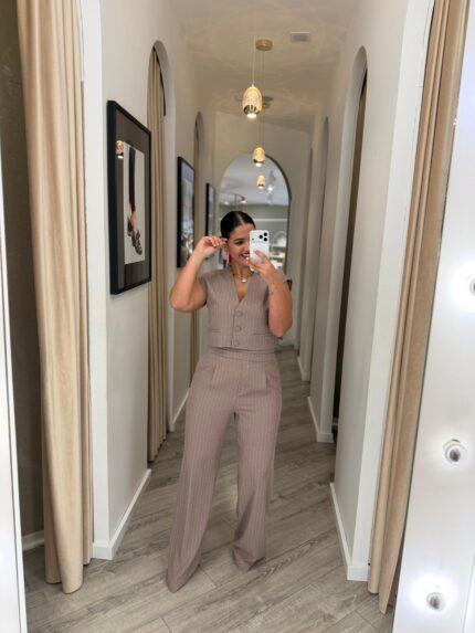 €107.00COLETE TAUPE COM RISCA DIPLOMÁTICA E BOTÕES FORRADOS IMPERIAL