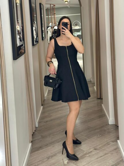 VESTIDO PRETO TEXTURADO COM ZÍPER RINASCIMENTO