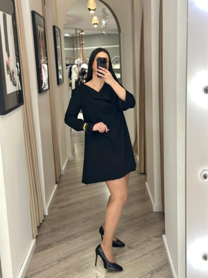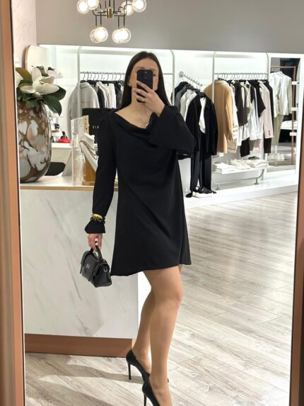 VESTIDO PRETO COM DECOTE DRAPEADO NAS COSTAS RINASCIMENTO