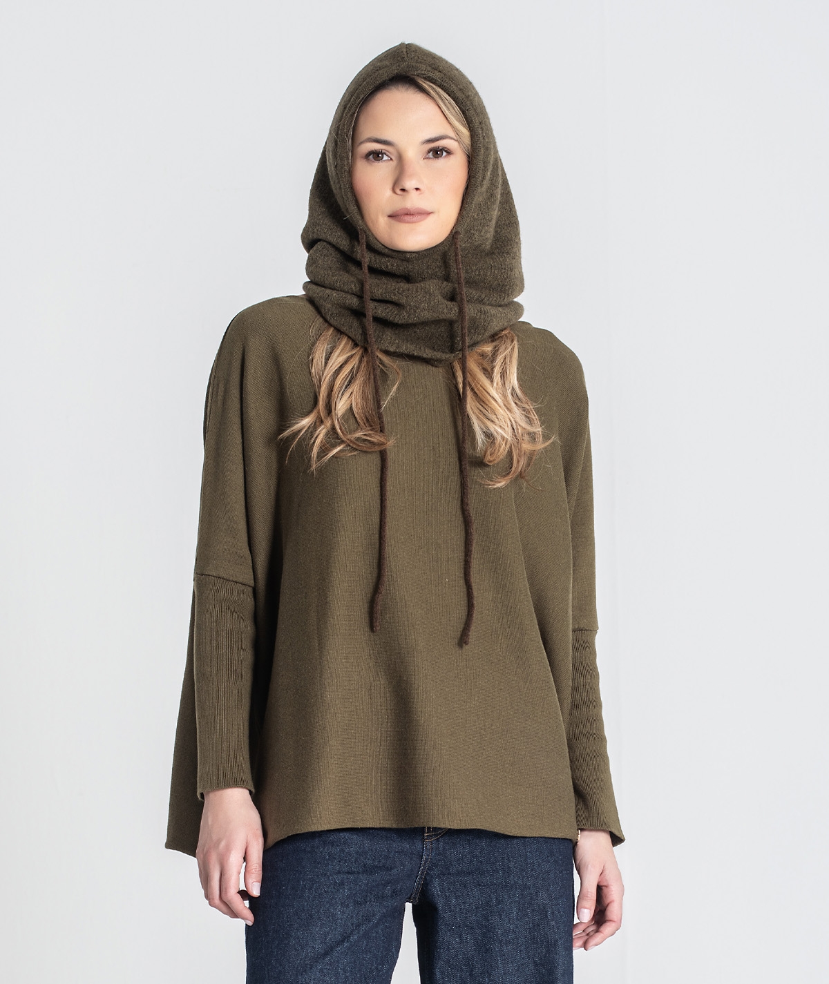 A malha tem uma textura aconchegante e envolvente, que se ajusta ao rosto de forma confortável sem apertar. O design simples e funcional permite combinar facilmente com casacos oversized, malhas ou conjuntos casuais, trazendo sempre um ar contemporâneo e cuidado ao look.