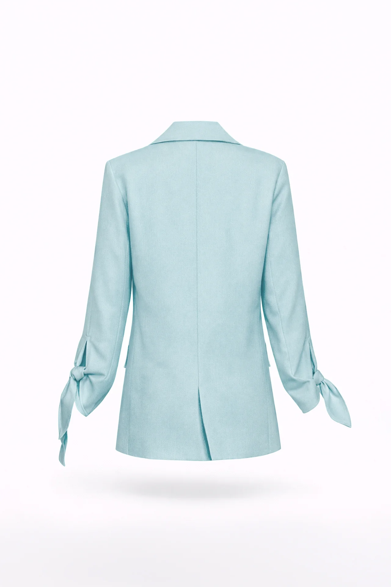 O design destaca-se pelo corte estruturado que valoriza a silhueta, lapelas clássicas e fecho frontal com botões. O detalhe de laço nas mangas acrescenta um elemento diferenciador e delicado, tornando este blazer único e cheio de personalidade.