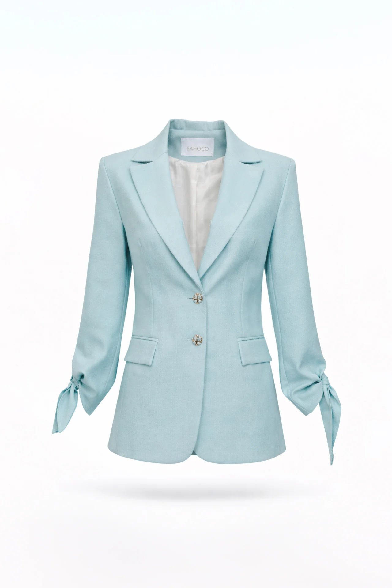 BLAZER AZUL ESTRUTURADO COM LAÇO NAS MANGAS SAHOCO