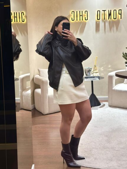 CASACO CASTANHO EM ECOPELE PONTO CHIC