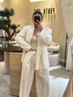 Blazer clássico e elegante, perfeito para quem procura um look sofisticado e intemporal. Com gola de lapelas alongadas e recorte que valoriza a silhueta, este blazer combina estilo e conforto. Confecionado em uma mistura de algodão, linho e poliéster, oferece um toque macio e acabamento impecável. O forro interno garante um caimento estruturado e confortável, ideal para qualquer ocasião, seja formal ou casual. Um essencial no guarda-roupa para elevar qualquer outfit com classe e versatilidade. Faz conjunto com a PANTALONA FLUÍDA BRANCA COM CINTO ELEH
