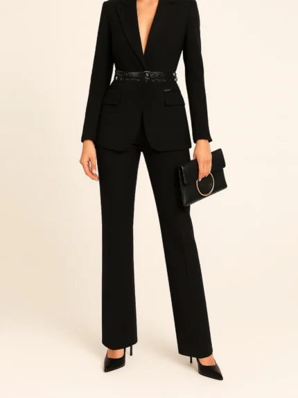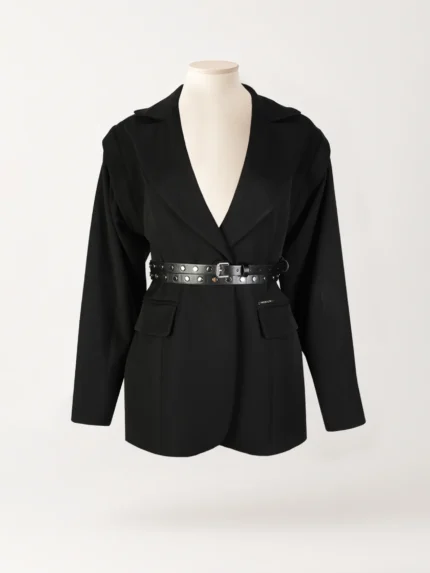 Blazer de gola de abas e manga comprida com ombreiras. Bainha simétrica e punho combinado. Forro combinado no tom.