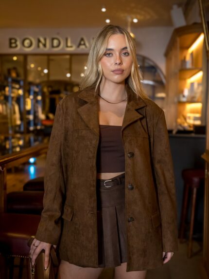CASACO BLAZER EM CAMURÇA CASTANHO PONTO CHIC