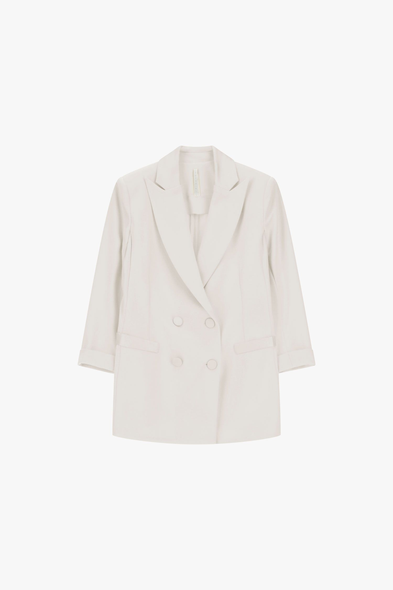 Blazer em tom cru, elegante e luminoso, pensado para elevar qualquer look com sofisticação imediata. O corte estruturado valoriza a silhueta, enquanto a lapela clássica e o fecho cruzado com botões forrados reforçam a sua estética premium.