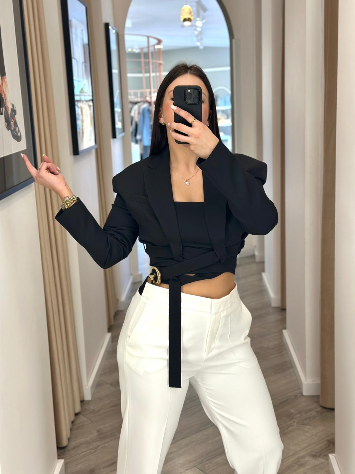 BLAZER CURTO PRETO COM CINTO GAELLE PARIS