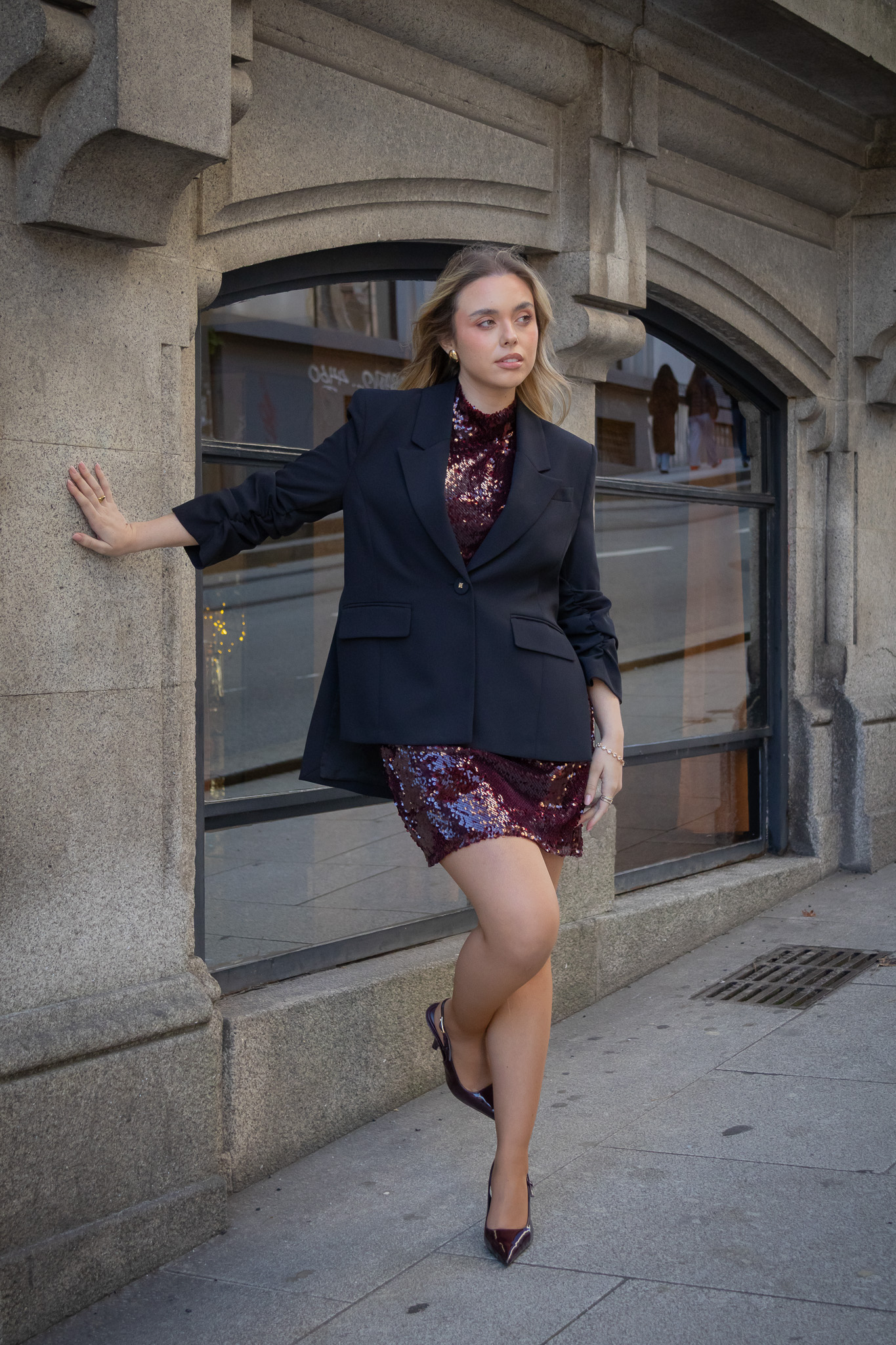 Um blazer que esbanja requinte e simplicidade, ideal para quem busca um visual formal com um toque de originalidade. O fecho de um botão e os bolsos oferecem funcionalidade e praticidade, tornando esta peça perfeita para o escritório ou reuniões formais. Um design que complementa qualquer guarda-roupa, proporcionando um visual confiante e sofisticado. Composição: 100% Poliéster