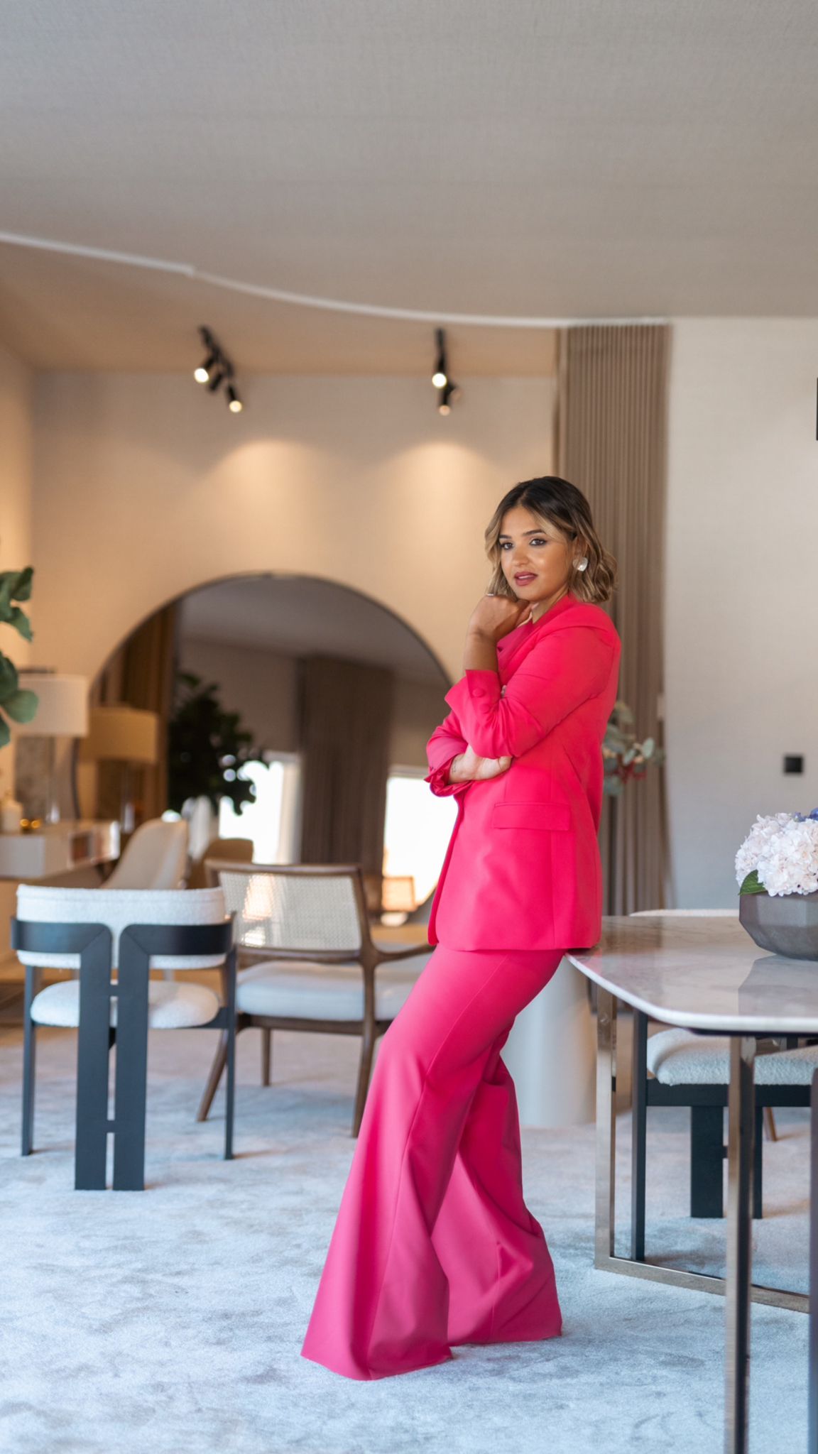 A sua cor rosa vibrante é o ponto de destaque — versátil e moderna, ideal para criar coordenados monocromáticos com o top e a saia da mesma linha, ou para dar um toque de cor a looks neutros.