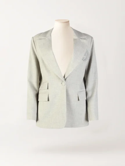 Com linhas limpas e um corte clássico que favorece a silhueta, este blazer destaca-se pela lapela elegante, fecho com botão único e pelos bolsos com aba que reforçam o caráter de alfaiataria premium. O elemento diferenciador — o emblema bordado no peito — acrescenta personalidade e exclusividade, elevando a peça e tornando-a ideal para quem procura transmitir confiança com suavidade.