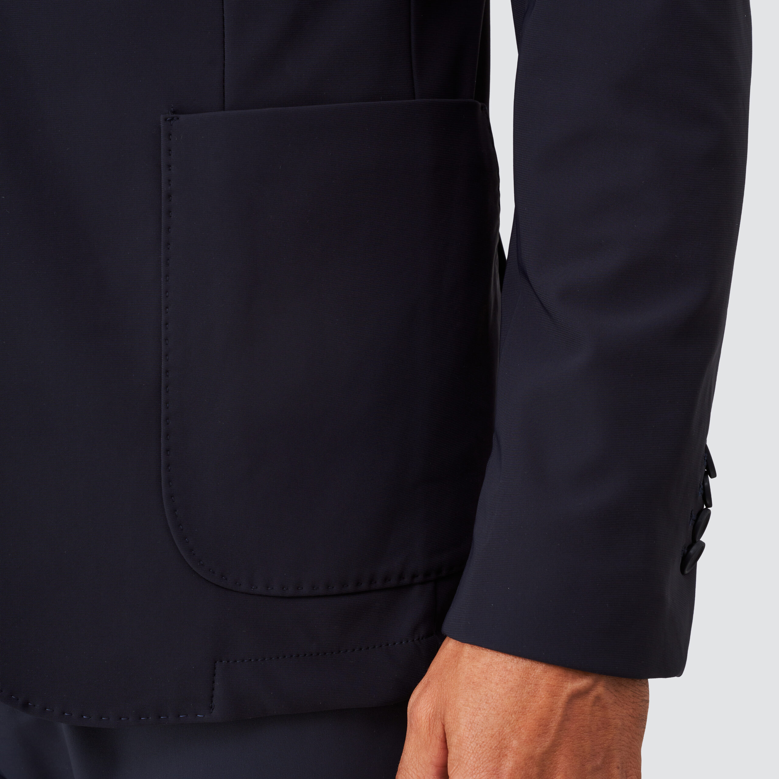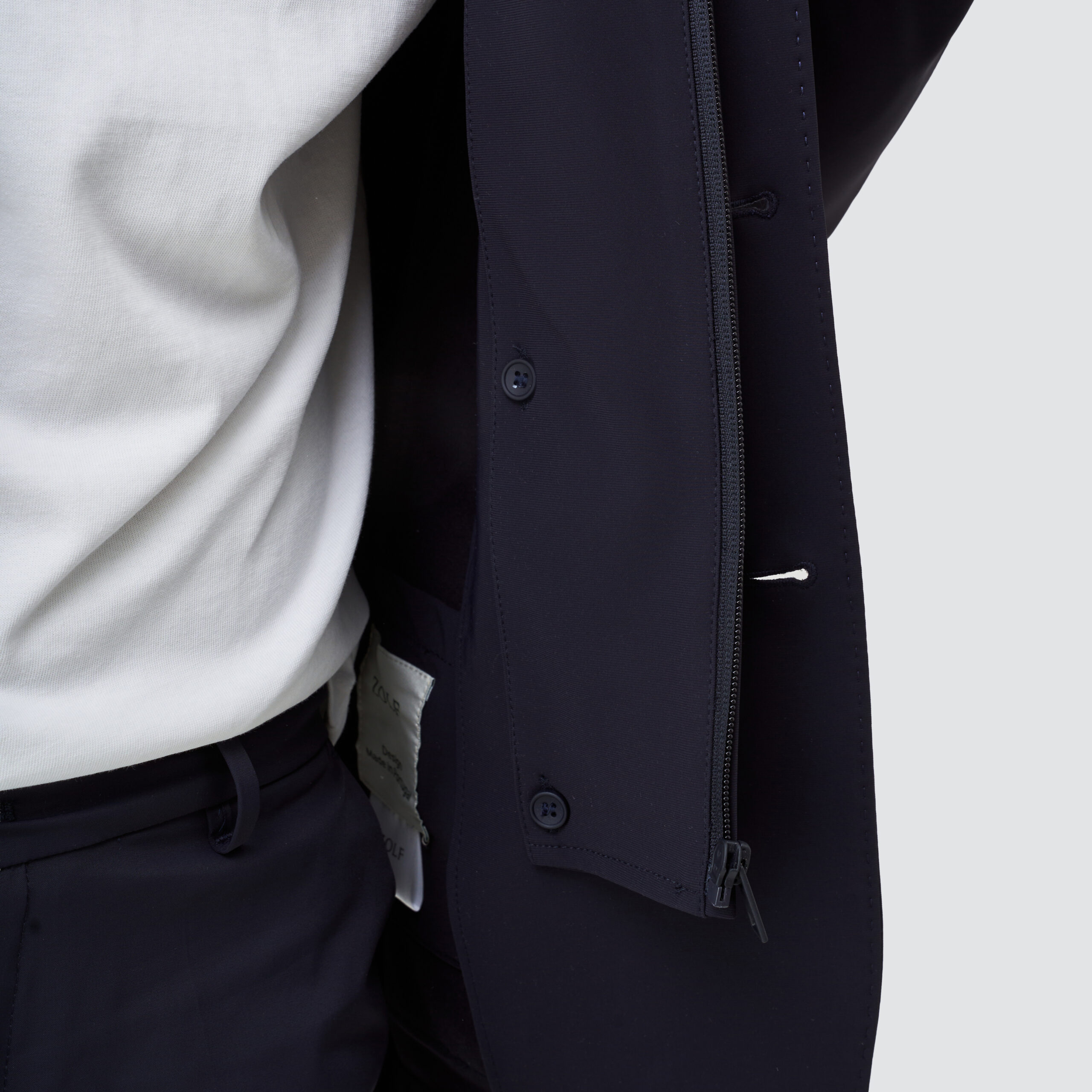 O design inovador destaca-se pela fusão de blazer clássico com capuz e fecho desportivo, criando um estilo contemporâneo e versátil. Os bolsos frontais e os botões adicionam funcionalidade e detalhe refinado à peça.