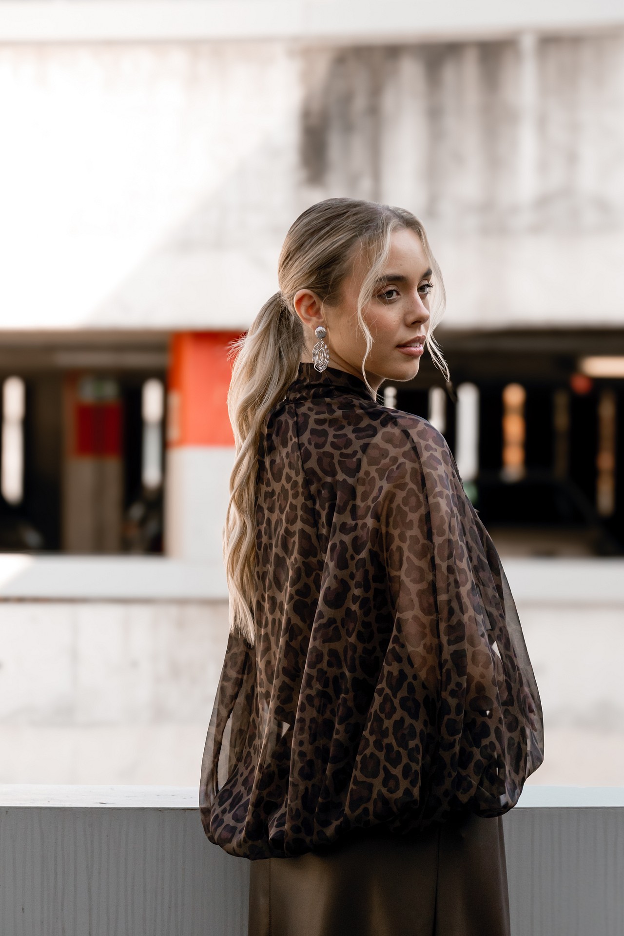 A blusa animal print Imperial é uma peça leve, feminina e sofisticada, perfeita para elevar qualquer coordenado. Confeccionada em 100% poliéster, apresenta um tecido fluido e translúcido com toque sedoso, que garante conforto e elegância em todos os momentos.