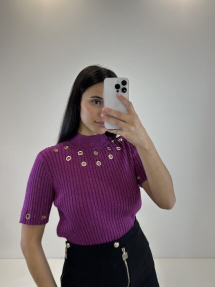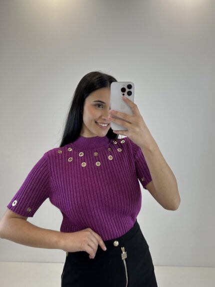 CAMISOLA ROSA COM ILHÓS CANELADA GIL SANTUCCI