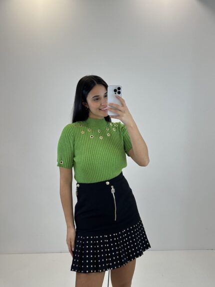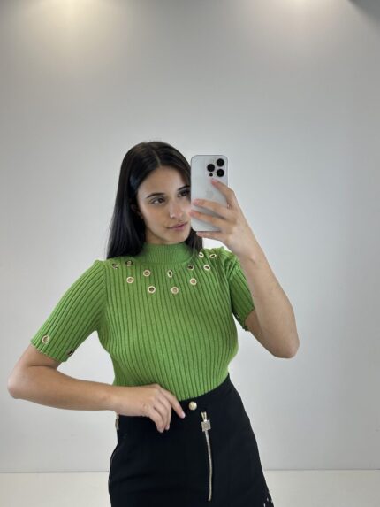 CAMISOLA VERDE COM ILHÓS CANELADA GIL SANTUCCI