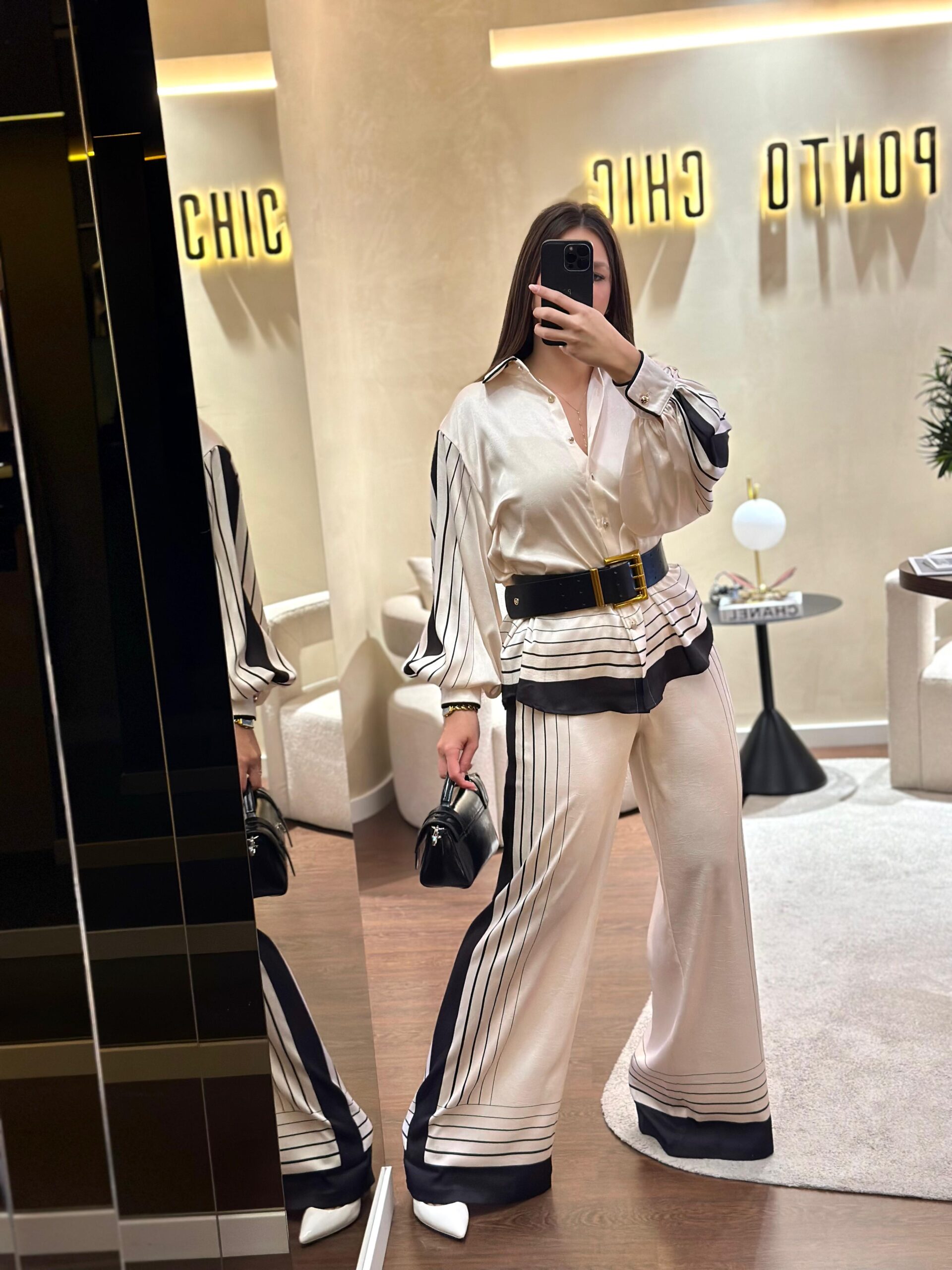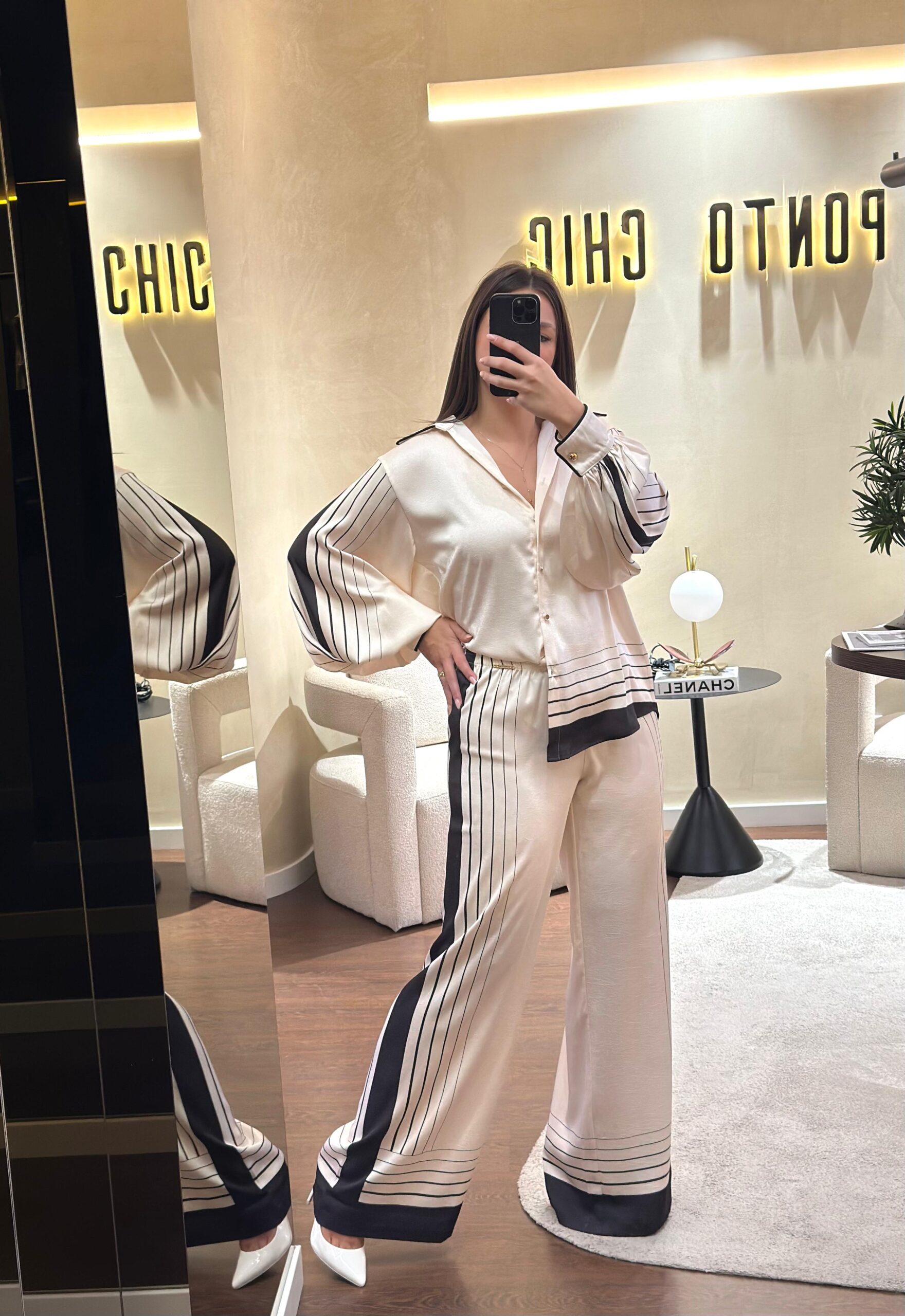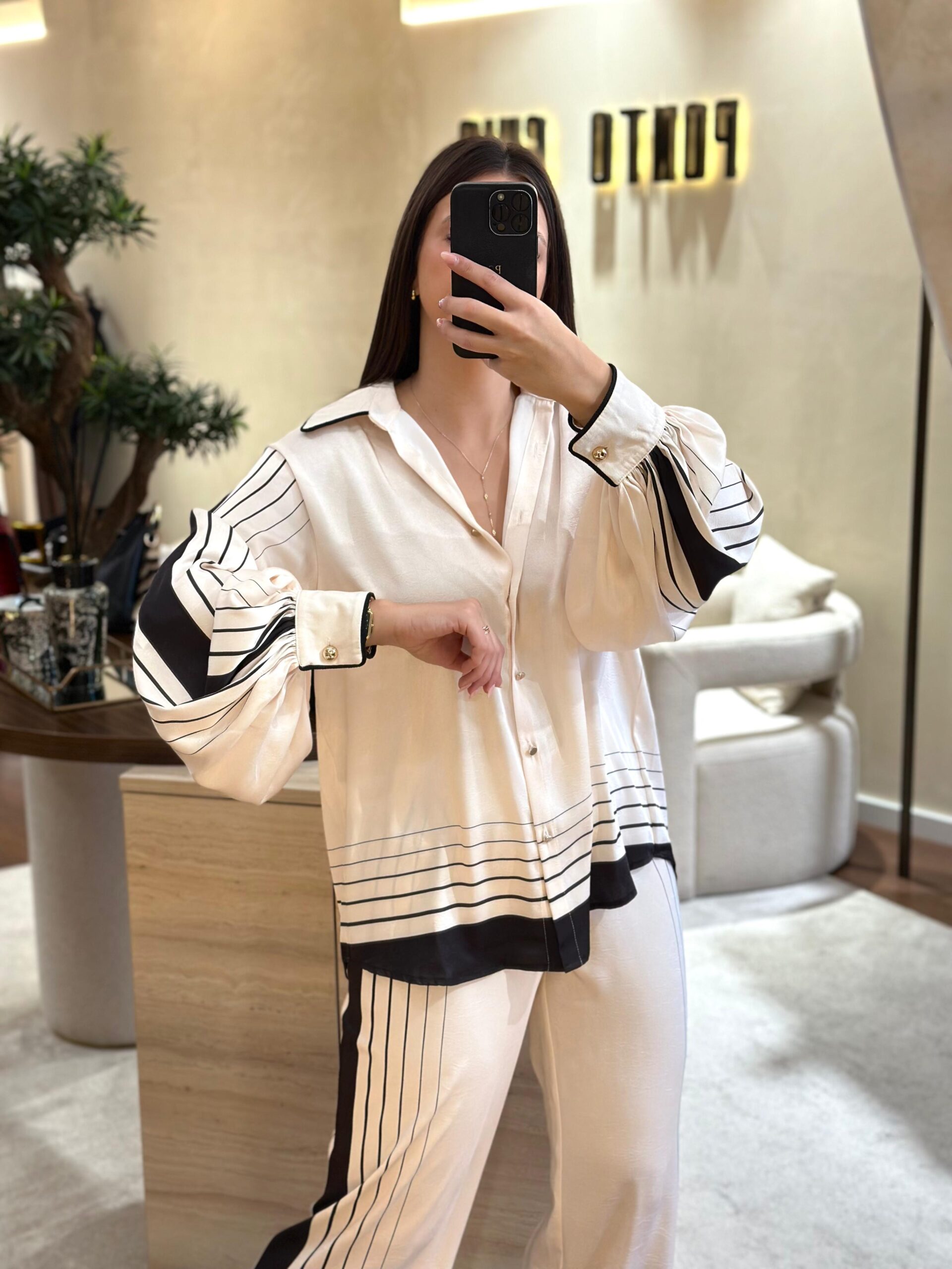 BLUSA CREME COM PADRÃO DE RISCAS SAHOCO