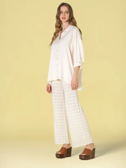 Uma peça versátil e intemporal, perfeita para combinar com calças, saias ou coordenados, ideal para looks elegantes, frescos e sem esforço.