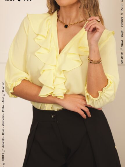 Versátil e fácil de conjugar, esta blusa adapta-se tanto a coordenados mais sofisticados com calças de alfaiataria ou saias, como a looks mais descontraídos com jeans, mantendo sempre uma estética delicada e refinada.