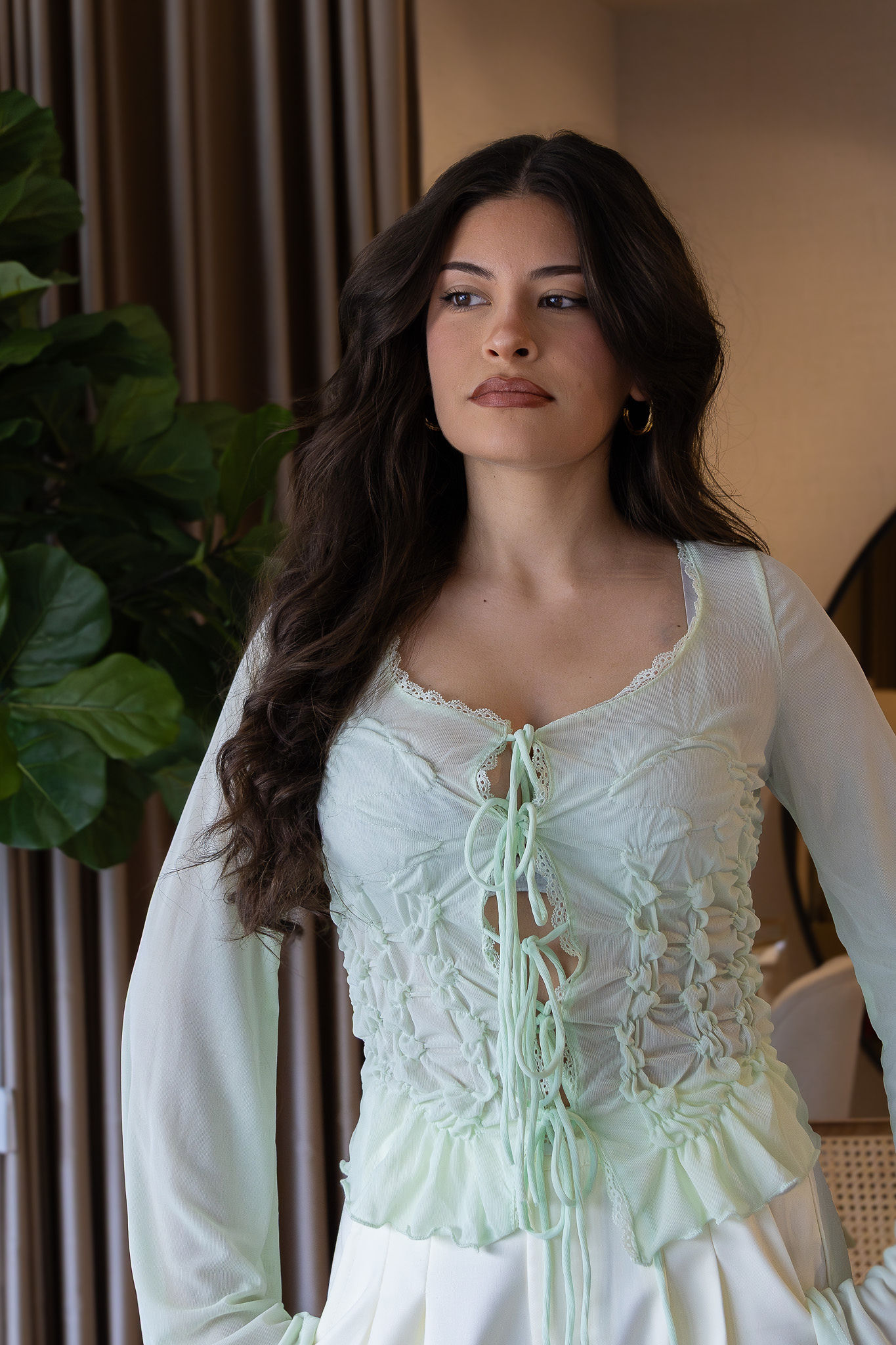 Uma blusa diferenciadora, romântica e sofisticada, ideal para looks de dia mais elegantes ou produções noturnas com identidade e estilo.