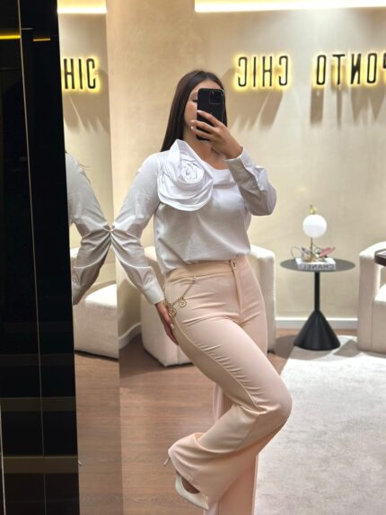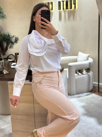 BLUSA BRANCA COM DETALHE DE ROSA RINASCIMENTO
