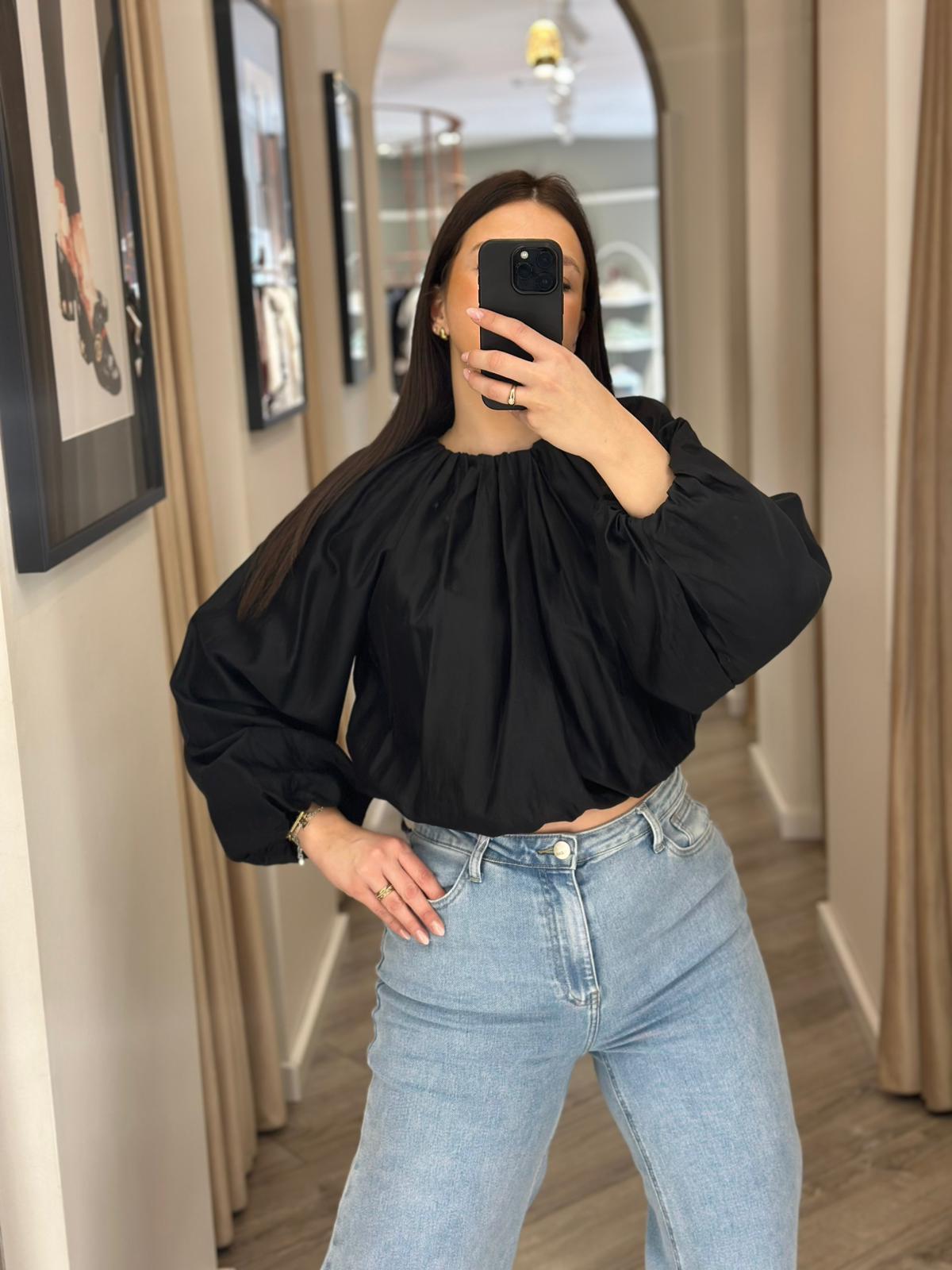 BLUSA PRETA COM CORTE ABALONADO ELEH
