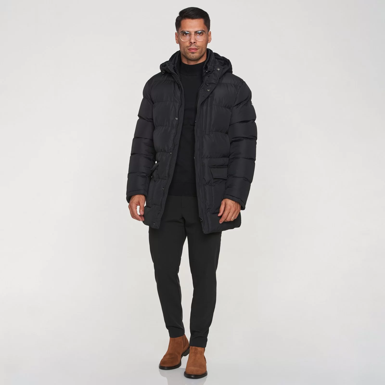 Versátil e sofisticado, o blusão trench acolchoado preto Zolf adapta-se facilmente a coordenados casuais ou urbanos, sendo perfeito para quem procura um casaco robusto, funcional e com um toque premium para o inverno.