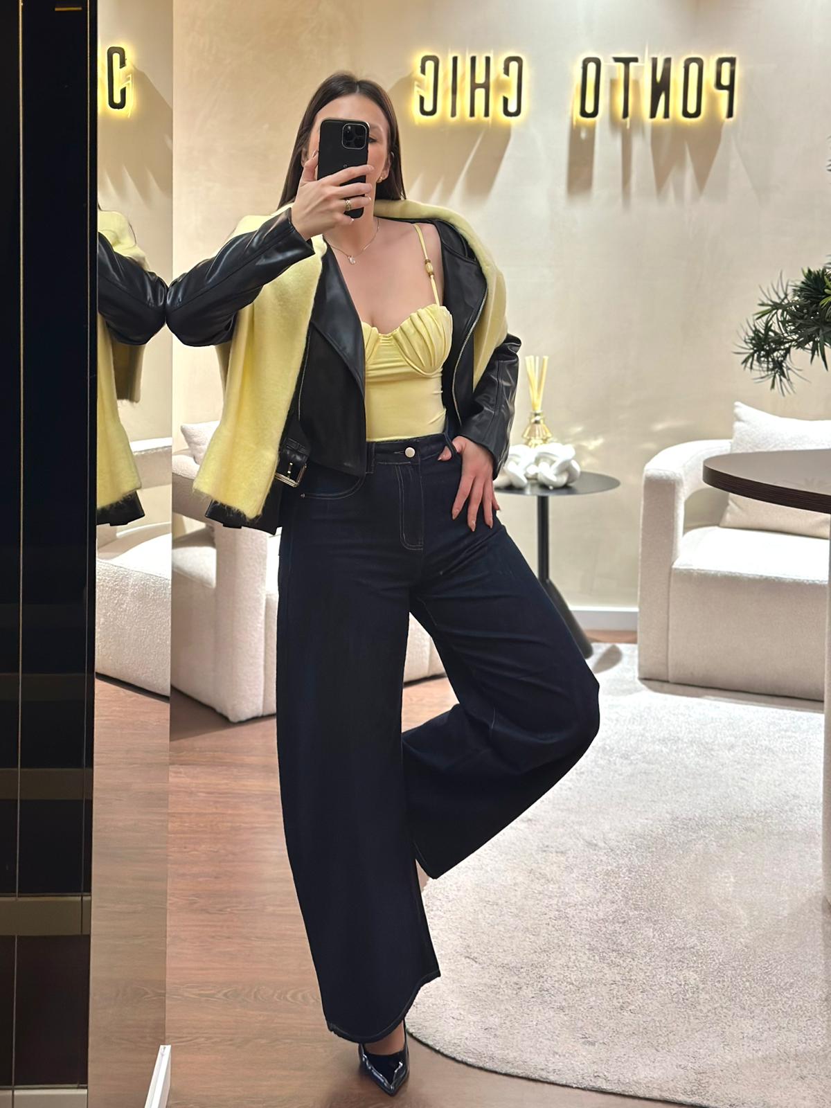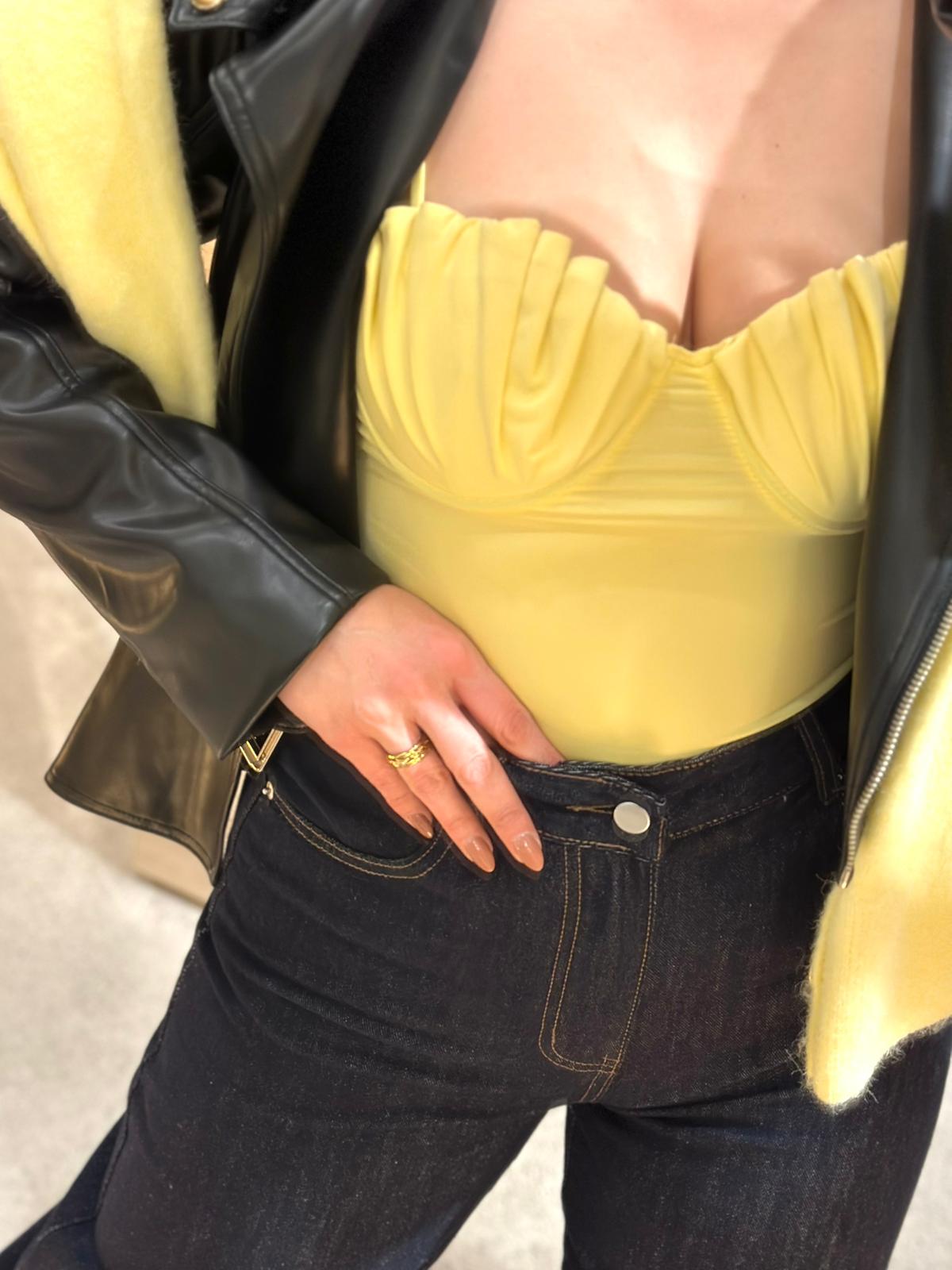 BODY AMARELO COM PREGAS NO DECOTE PONTO CHIC