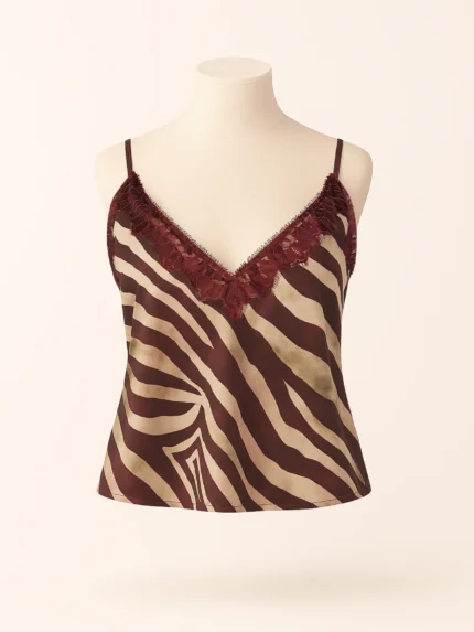 TOP ESTAMPADO ZEBRA BORDÔ COM RENDA SAHOCO