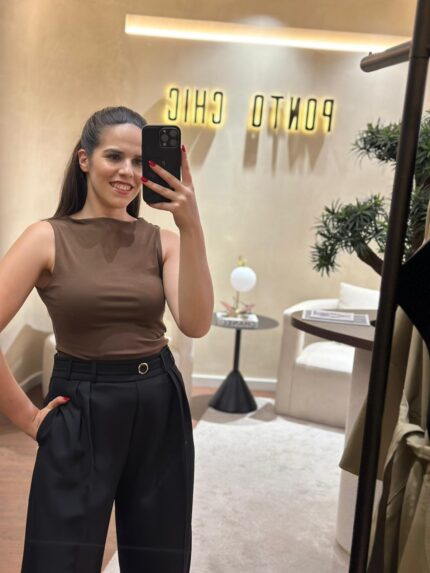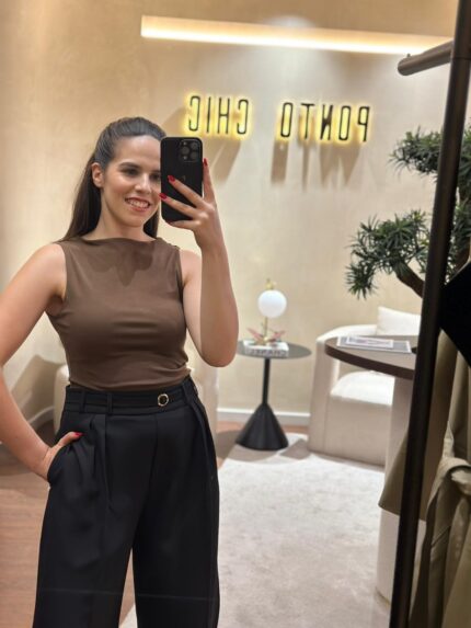 TOP CASTANHO DRAPEADO ASSIMÉTRICO PONTO CHIC