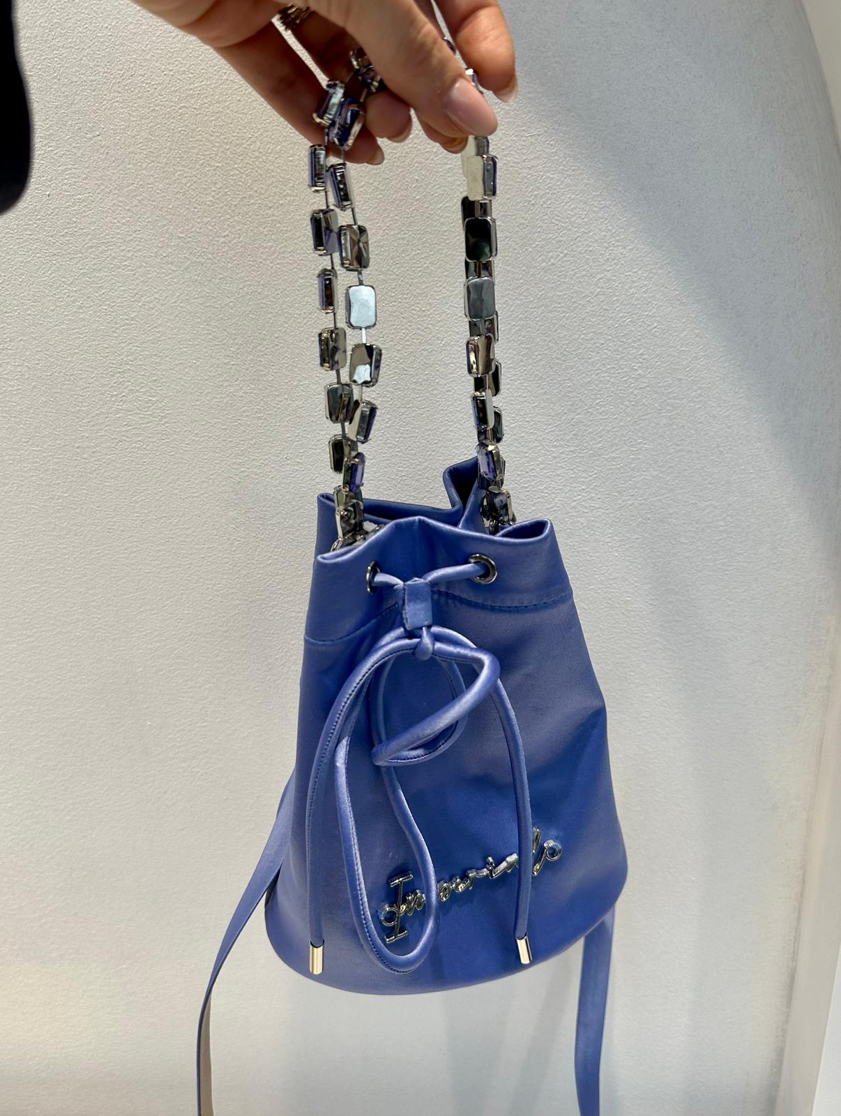 BOLSA AZUL COM ALÇA DE PEDRAS DECORATIVAS IMPERIAL