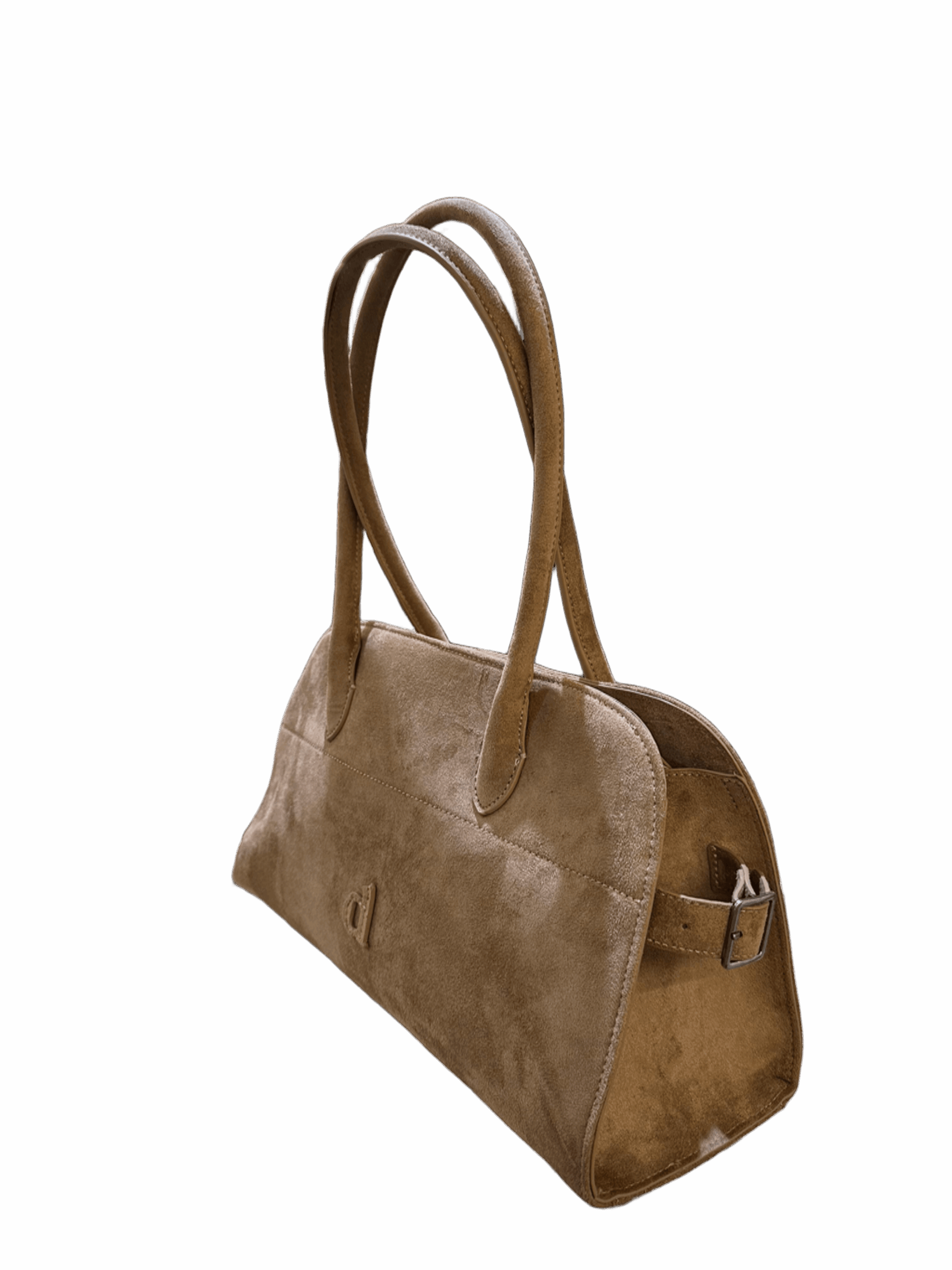 Bolsa em 100% couro com acabamento efeito camurça, numa elegante tonalidade castanha quente e sofisticada. Uma peça estruturada, pensada para quem procura um acessório com presença mas fácil de conjugar no dia a dia.