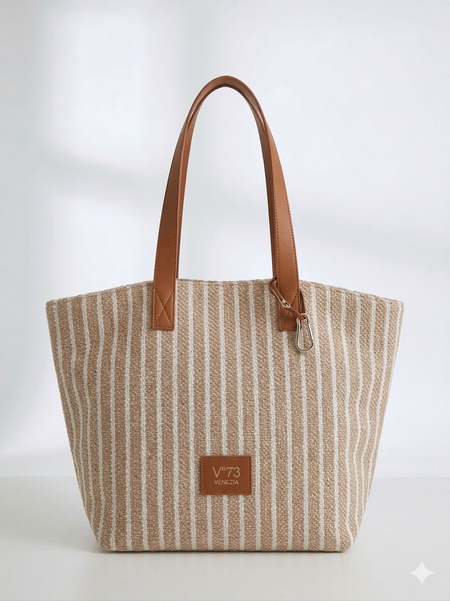 A bolsa listrada Ponto Chic combina a leveza dos materiais com a elegância dos acabamentos em pele camel, resultando numa peça intemporal e cuidadosamente equilibrada. O padrão às riscas em tons neutros reforça a sua versatilidade, permitindo integrar facilmente diferentes propostas de look.